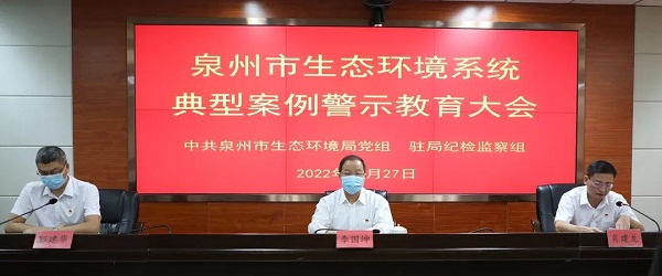 李国坤强调,全市生态环境系统要以党的二十大精神为指引,坚定理想信念,加强政治建设,树牢宗旨意识,时刻检视自我,养正气、祛邪气、固根本,在生态环境保护工作一线求真务实,埋头苦干,全力以赴为推动“海丝名城、智造强市、品质泉州”建设提供良好的生态环境保障。